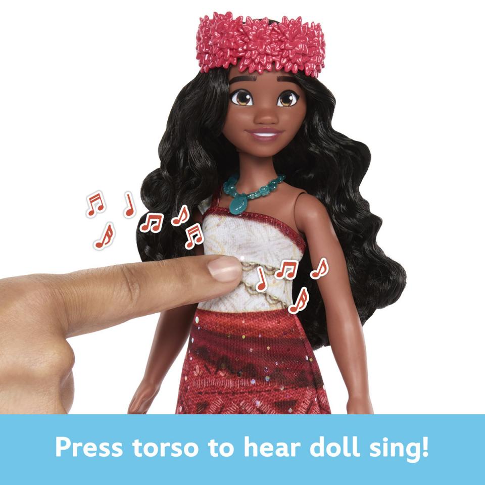 Sing along to your favourite songs from Disney’s Moana 2 with this 32cm Singing Moana Doll. This interactive doll is inspired by the courageous leader from the beloved Disney film! This sweet Moana doll sings the original song ‘We’re Back’ from the theatrical sequel to the 2017 Movie, Moana. Little ones can pose Moana however they like with her articulated arms, legs, and head. Product Features: Embark on wayfinding adventures with this Disney Moana 2 Singing Moana Doll Inspired by the courageous leader from the much-loved movie Press Moana’s torso to hear a clip of ‘We’re Back’ from Moana 2 Doll is articulated at the arms, head, and legs, allowing little Wayfinders to recreate their favourite Moana adventures or imagine their very own! Features true-to-movie details and comes in her iconic outfit from the movie, with wavy hair and fun accessories Includes: 1 x Disney Moana Singing Moana Doll Battery Requirements: 3 x LR44 (included) Approximate Dimensions: 32cm Suitable for ages 3 years +