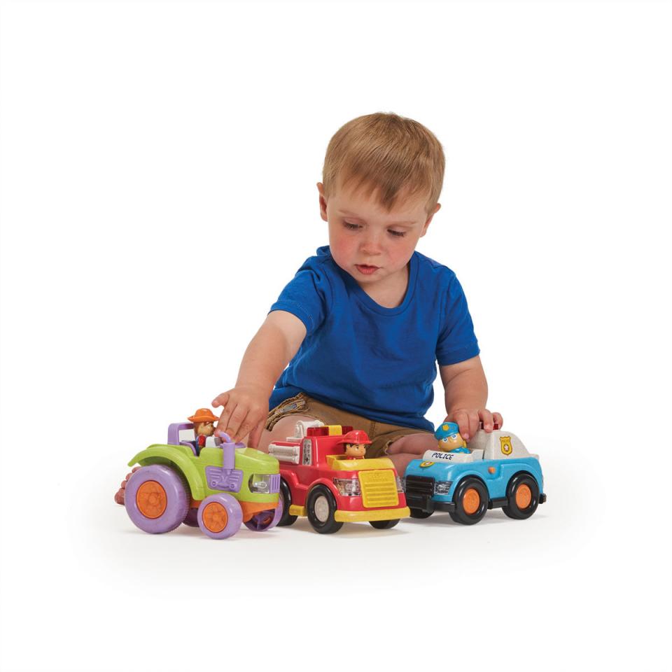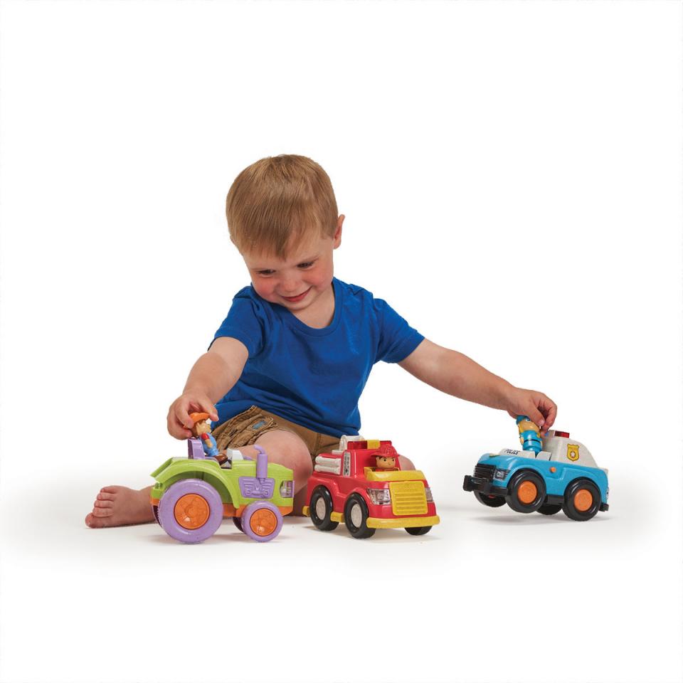 Create free-wheeling fun with your Eco-Friendly Lights and Sounds Tractor from Early Learning Centre. Let’s get the day started on the farm by popping our farmer in the driver’s seat and setting off. We can create imaginative stories as we drive around the fields and care to our animals. We need to feed the cows and chickens then collect the crops for our tea. Let’s press the buttons to see the headlights flash and hear the engine and the beeping horn. We can give the tractor a big push- how far does it go Pushing a vehicle is a great way for your toddler to enjoy being active. Made with recycled plastic and plant fibre composite, this toy is a more sustainable option for your little ones. Playing with your lights and sounds vehicle encourages imaginative play while helping develop hand to eye coordination and stimulating the senses. Product Features: Chunky lights & sounds free-wheeling vehicle and removable figure Includes: 1x lights and sounds tractor and 1x farmer Free-moving wheels for push-along fun Tough and durable Flashing headlights and fun sounds This toy contains recycled plastic and plant fibre composite for a more sustainable option Playing pretend inspires the imagination Battery Requirements: 3x LR44 batteries (included) Product dimensions: 12cm (H) x 11cm (W) x 16cm (D) Suitable for ages 2 years+