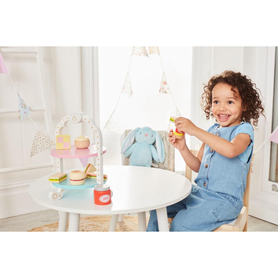 Let’s have a lovely afternoon treat with our Wooden Afternoon Tea Set from Early Learning Centre. We can sit down to eat with our teddies and friends. Stack all the special treats onto the lovely 2 tier cake stand. Pass the sandwiches around the table and choose your favourite treat. Would you prefer Battenberg cake or a strawberry tart We can add some jam and cream to our scone and enjoy a fun afternoon chatting and pretending to eat all the food. Perfect for gifting, this colourful wooden role play set encourages pretend play and inspires the imagination. Colourful treats set on pretty 2 tier stand Includes: 1x cake stand, 4x sandwiches, 1x pot of jam, 1x scone, 1x pot of cream, 1x strawberry tart and 1x slice of Battenberg cake Made from sustainably sourced wood Perfect for gifting Encourages imaginative, pretend play Product dimensions: 29 x 26.5 x 28 cm Packaging dimensions: 30 x 30 x 6.5 cm Suitable for age 3 years +