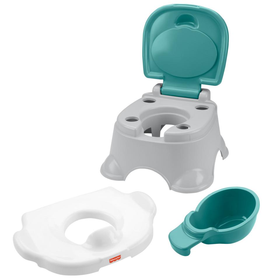 Start your toddler’s toilet-training journey with the Fisher-Price 3-in-1 Potty. Starting off as a training potty chair, the removeable potty ring can then be used on a standard-sized toilet to help your child move on to the next stage. It’s textured lid also folds down to become a stand-alone step stool to help them on and off the toilet and give them a boost up to the sink. It’s easy to clean, with a removeable bucket and splash guard and a secure, non-skid base so your little one can learn how to go with confidence. Product features: Includes 1 x Fisher-Price 3-in-1 Potty Converts from a training potty chair, to a removeable potty ring for use on a standard-sized, adult toilet, to a step stool for your toddler to reach the toilet and sink Features a textured lid that folds down to become a sturdy stool to stand on in the bathroom and toilet Features an easy-to-clean removeable bucket, splash guard and a stable, non-skid base Battery requirements: 1 x C (not included) Suitable for ages 18 months +