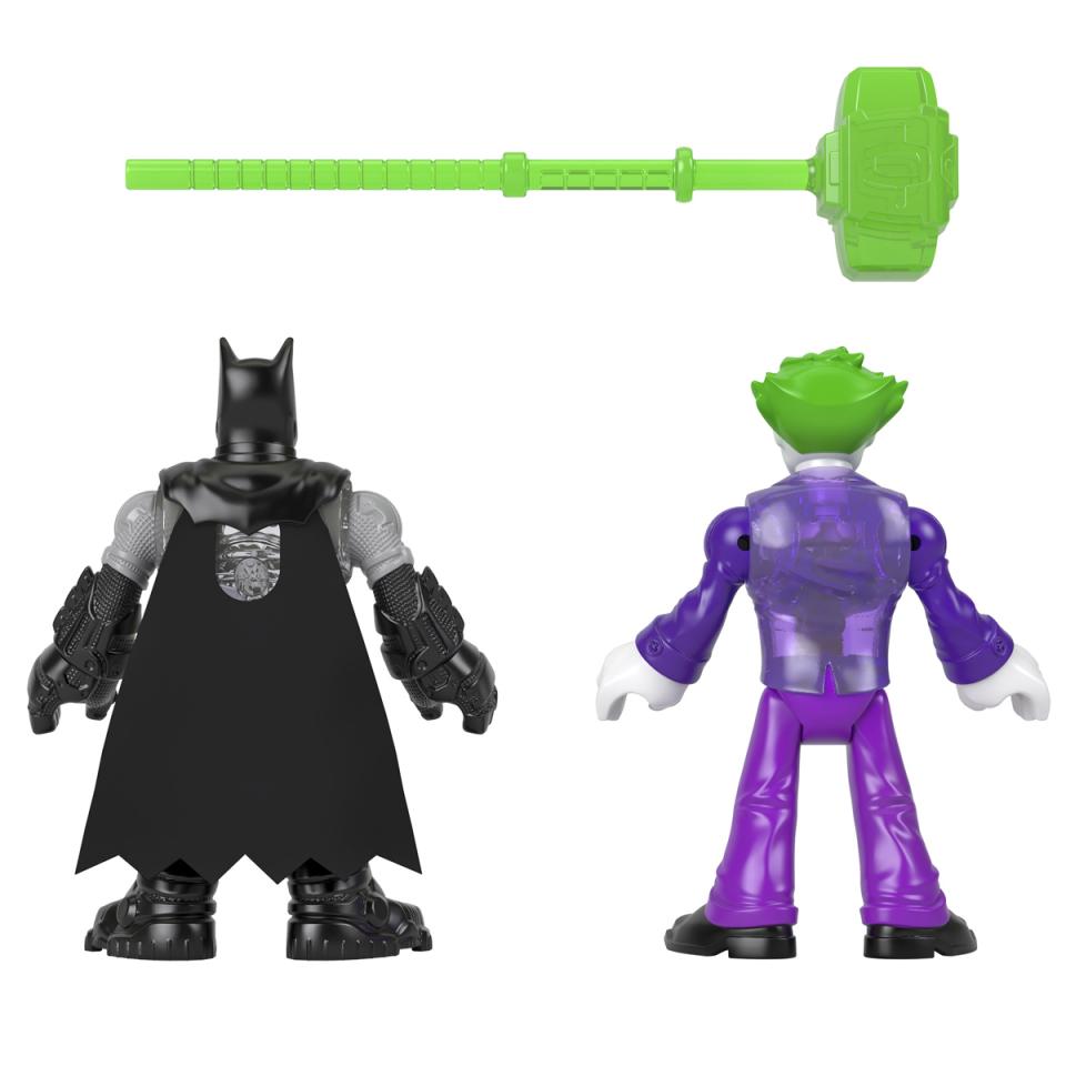 Kids can create their own action-packed, Super Hero versus Super-Villain adventures with this Imaginext DC Super Friends figure set. These poseable character figures come with a removable battle accessory for more realistic action. Bring these figures to the power chamber of the Imaginext DC Super Friends Bat-Tech Batcave up (sold separately) to see their translucent chests light up. Product features: Includes: 2x Imaginext DC Super Friends figures, 1x battle accessory Kids can act out their own DC Super Friends adventures with this Imaginext figure set Poseable figures have moveable arms and legs for more realistic action Place the figures in the power chamber of the Imaginext DC Super Friends Bat-Tech Batcave up (sold separately) to see the chest for light-up Suitable for ages 3 years +