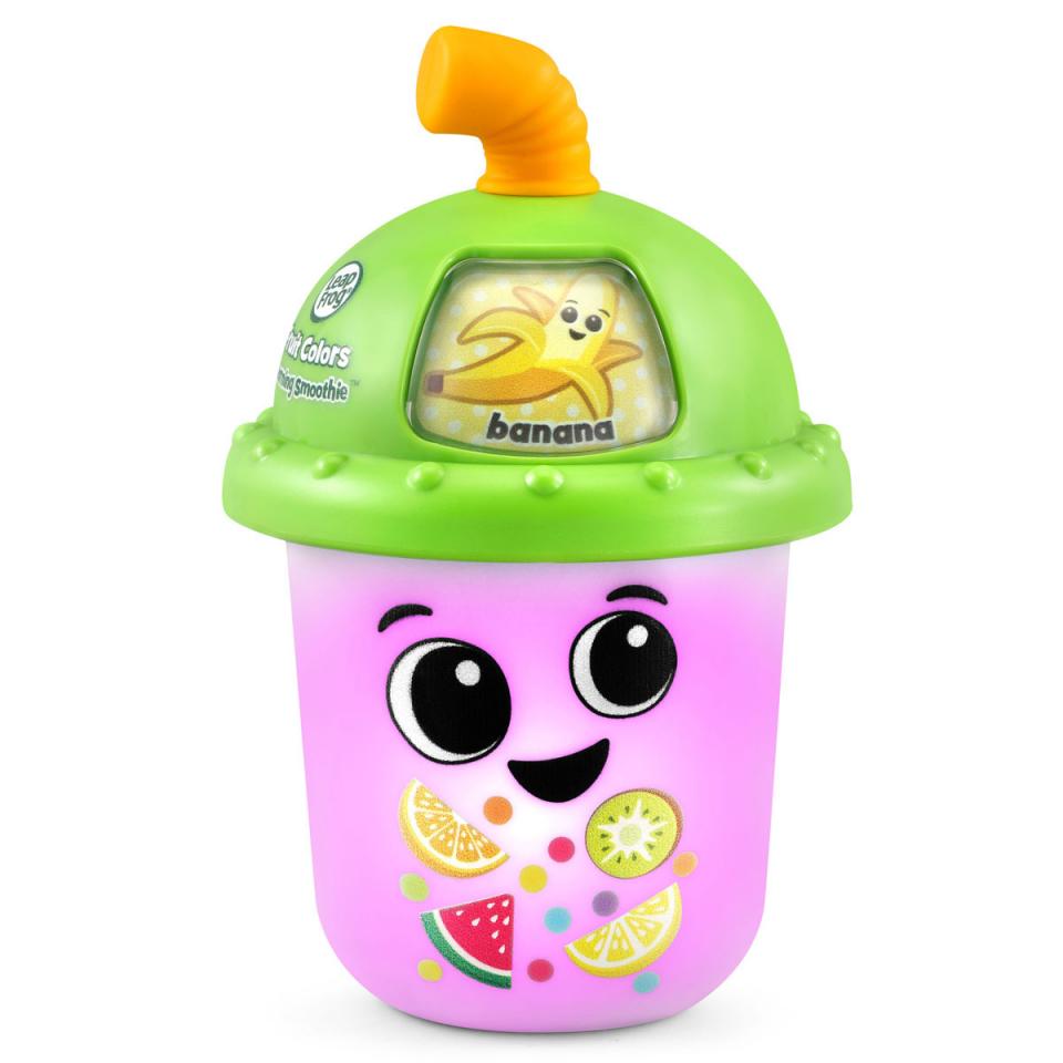 Take a smoothie break while your little one explores this LeapFrog Fruit Colours Interactive Learning Smoothie. Learning is delicious with this cute, colourful cup. Swivel the straw to choose from five fruity flavours and the cup will change colour to match-this smoothie is bananas! Meet Crystal the Cup plus five funny fruits like Sherry Strawberry and Oliver Orange who introduce themselves and their colours. The straw doubles as a teething toy for little ones to nibble as they listen to fruit-themed sing-along songs and music. Shake up the smoothie cup to hear the bubble beads bounce. Product features: Includes: 1 x LeapFrog Fruit Colours Interactive Learning Smoothie Swivel the straw to choose from five fruity flavours The straw doubles as a teething toy for your little one to nibble on as they learn Approximate Dimensions: 13.5 x 8.6 x 8.6 cm Battery Requirements: Requires 1 x AA battery (Included) Suitable for ages 6 months +
