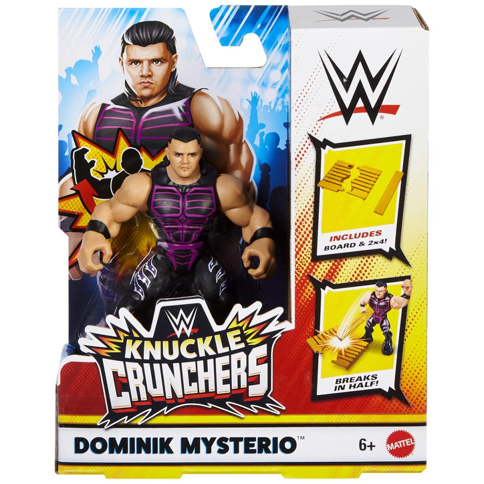 Make opponents feel the crunch with the WWE Knuckle Crunchers Dominik Mysterio 8cm Action Figure.Featuring knuckle-size bone-crunching action and breakaway accessories, each figure is ready to rock the WWE Universe. The 3.25-inch scale Superstars allow kids and collectors to play out matches seen on WWE with the excitement of sound!Product features: WWE Knuckle Crunchers action figures feature fan-favourite Superstars with bone-crushing action Just move the arms, torso and legs on each small figure for a bone-crunching sound The 3.25-inch Superstar figures come with authentic ring gear for power moves and battle displays Includes: 1x WWE Knuckle Cruncher figure, 1x accessory Suitable for ages 6 years +