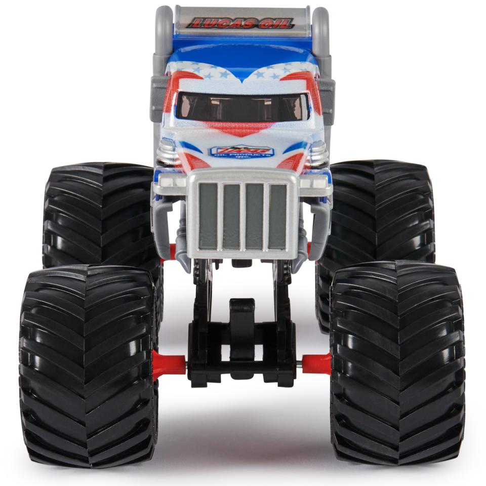 Ramp up your Monster Jam game with the all-new, official Stabilizer 1:24 Monster Truck. Featuring awesome graphics and a detailed chassis, this authentic replica embodies the style and swagger of the real thing. Official rubber BKT tyres provide greater traction, so you can take your toy truck to new heights. Plus, a working suspension system absorbs more impact, so the high-flying, car-crashing, truck-trashing jumps never stop. With so many 1:24 scale die-cast monster trucks to collect, including El Toro Loco, Blue Thunder and more (sold separately), hosting your very own Monster Jam event is easy. Product features: Includes 1 x Monster Jam Stabilizer 1:24 Monster Truck Features awesome details and graphics, working suspension and rubber BKT tyres Collect all Monster Jam trucks and smash your way to victory (sold separately) Approximate Dimensions: 12 x 18 x 13cm Suitable for ages 3 years +