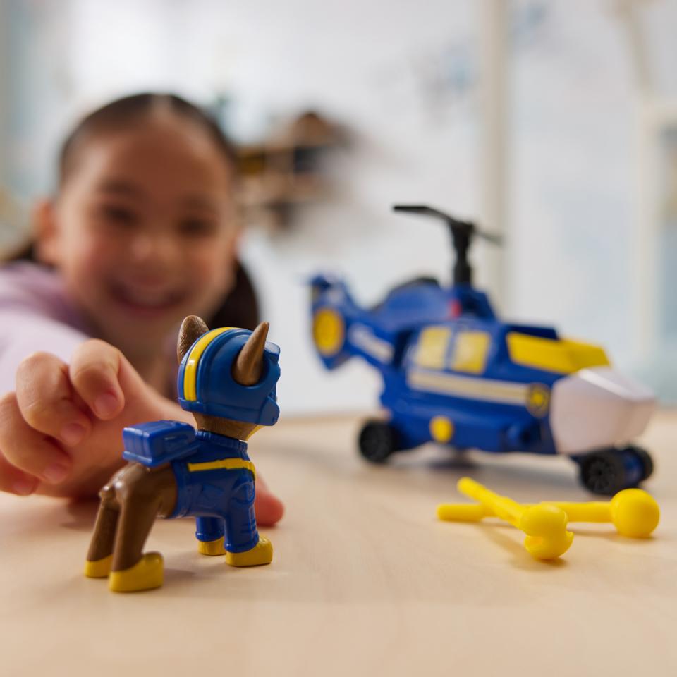 Take the fun of Adventure Bay to new heights with this Paw Patrol Air Rescue Chase’s Hero Helicopter Playset.Your favourite Pup’s from the TV Series Paw Patrol Air Rescue are ready to start new rescue missions in the air! Join Chase with his cool police rescue helicopter. With its movable propeller and launcher drop, the rescue operations can be started at home! Recreate the magic of Adventure Bay by firing the two supplied projectile launchers from the Helicopter and save the day. The included chase figure attaches to the helicopter and is ready for action. Whether you create your own unique adventures, or recreate your favourite Paw Patrol storylines, the fun is endless with the Air Rescue Crew!Features: Fire the bullets and save the day with Paw Patrol’s Chase and his Hero Helicopter Press the paw button on the helicopter and watch the two yellow projectiles fire away Become the new hero of Adventure Bay with Chase Features a super-cool police rescue helicopter with a movable propeller and bullet drop Contents: 1 x Paw Patrol 7cm Chase Figure, 1 x Paw Patrol Police Rescue Helicopter, and 2 x Projectile Launchers Approximate Dimensions: 19.05 x 17.78 x 11.43cm Suitable for ages 3 years +