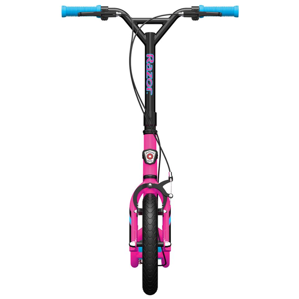 Quality meets timeless style with the Razor Flashback Pink BMX Style Scooter. Flashback is Razor’s homage to both the early days of BMX and the company’s Californian heritage with retro-inspired, sporty influences. It features fixed heavy duty steel V-style handlebars with soft rubber handgrips and front and rear calliper brakes. This large-wheel scooter guarantees the smoothest ride possible with two 12” mag wheels with air filled pneumatic tyres to soak up little bumps and give you minimal rolling resistance. The steel frame features an oversized tube construction and a double stacked clamp with a heavy-duty steel fork. Enjoy the old school feel with the BMX-inspired riser handlebar and an oversized steel deck with perforated full length grip tape with custom designed graphics combined with bright, bold colours. This retro bike is perfect lovers of ’80s and ’90s BMX. Product features: Includes: 1x BMX Scooter A stylish, authentic design with retro-inspired touches true to the BMX Vintage Scooter 12″ MAG wheels with pneumatic tyres and a steel frame with an oversized tube construction Hand-Controlled Brakes Keep things laid-back with an extra-large deck, complete with full surface grip tape to prevent slipping and sliding Maximum rider weight 100 kg Approximate Dimensions: 88.5 x 54.2 x 122.5 cm Suitable for ages 8 years + This product is part of The Entertainer Online Only Range